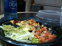 Still, after the meal when she was saying how uncomfortably full she felt, I was feeling satisfied and reenergized from my chicken kabob, glad I had passed on the starch. (My kabob was really good -- came with grilled onion, red and green peppers. I ordered it with a salad, minus the feta cheese and dressing. Instead, I squeezed some lemon on top of the lettuce and added salt and pepper. Was so yum!)